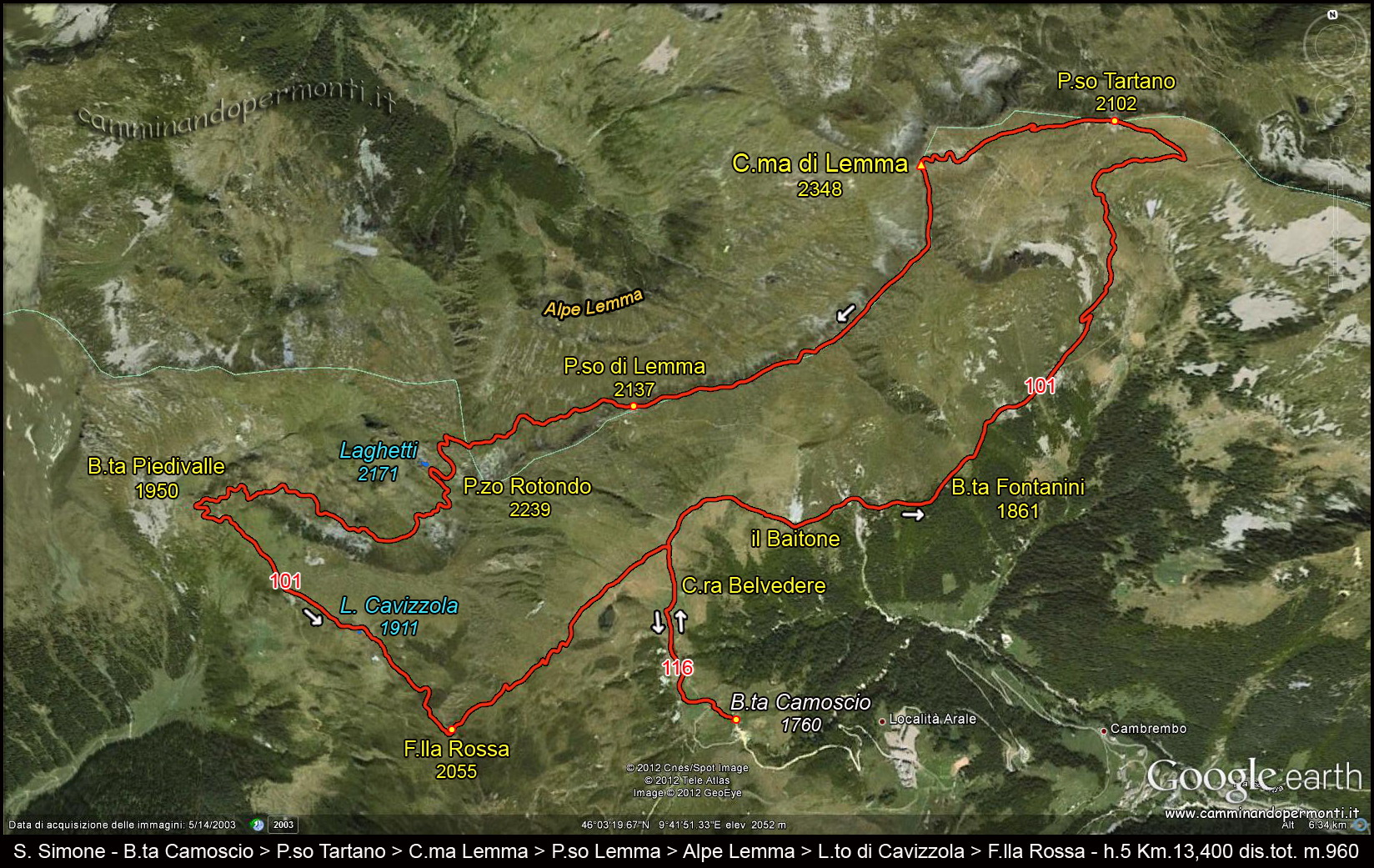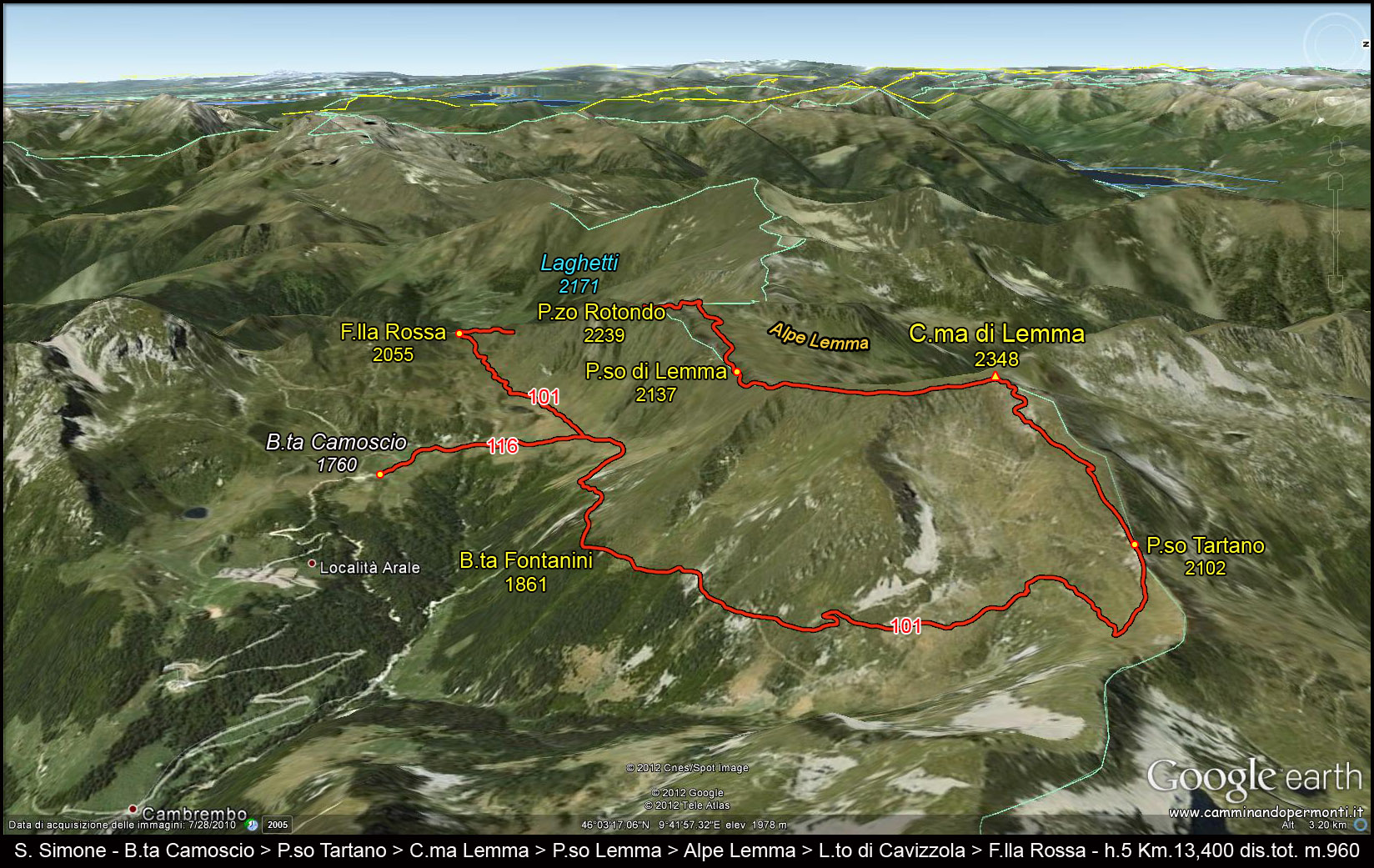 San Simone - Baita Camoscio > Passo Tartano > Cima di Lemma > Passo di Lemma > Laghetti >